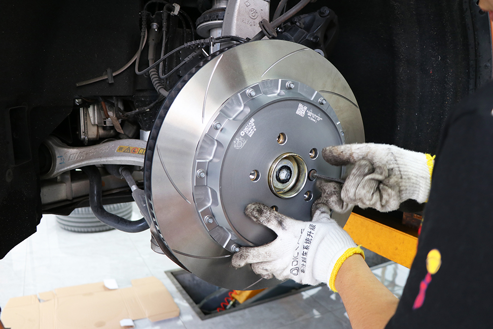 升級配置,街道版4活塞卡鉗 升級為 競技版6活塞,打孔通風一體盤 升級為 分體式劃線剎車盤。
