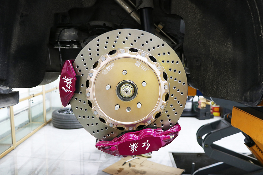 一臺(tái)車裝6個(gè)卡鉗是什么樣的,前面升級(jí)ap9560大六活塞卡鉗,后面是電子手剎所以只能升級(jí)雙卡鉗套裝,前輪2個(gè)卡鉗+后輪4個(gè)卡鉗,正常制動(dòng)時(shí)只有4個(gè)卡鉗工作,小卡鉗是駐車用的電子手剎卡鉗。